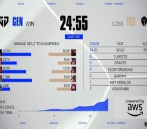 电竞体育10月23报道 2025全球总决赛瑞士轮Round4,GEN首局用时24分55秒速通TES,...