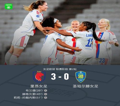 北京时间10月16日,女足欧冠联赛阶段第2轮展开较量,里昂女足以3-0战胜圣珀尔滕女足。布兰德传射建功,赫格贝里再下一城,莉莉-约翰内斯破门锁定胜局。最终,里昂女足3-0轻取对手,取得女足欧冠的两连胜。