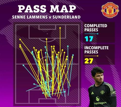 对桑德兰的比赛,拉门斯就频繁开大脚,他有17次成功的长传球,另外27次传球失败。左边卫迪奥古·达洛是另一个不断长传到对手禁区的曼联球员。曼联曾在对切尔西的比赛中受益于这一战术,谢什科头球摆渡之后,姆贝莫单刀赴会,迫使蓝军门将罗伯特·桑切斯犯规染红。